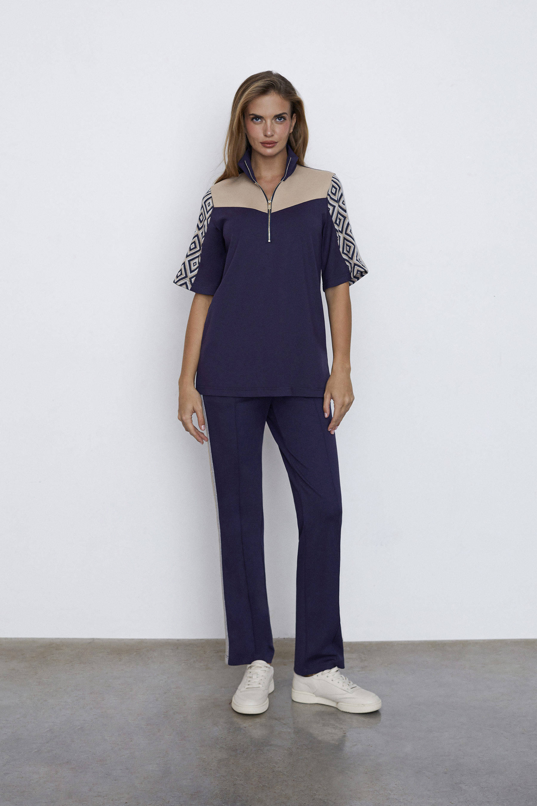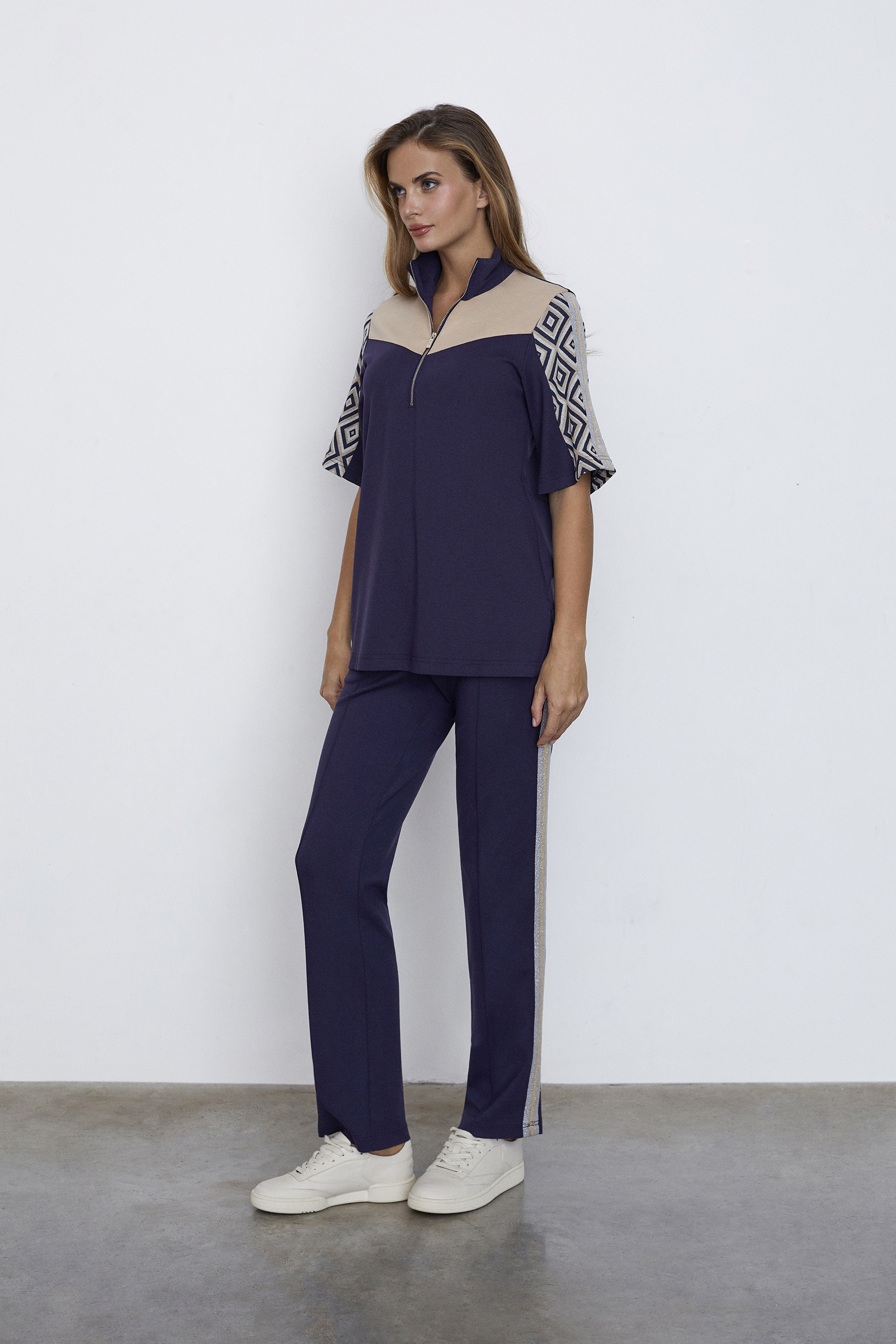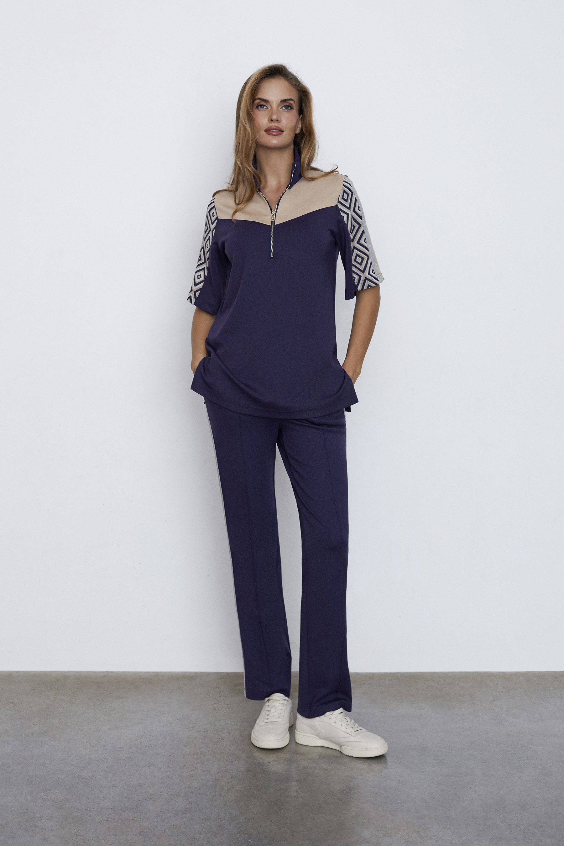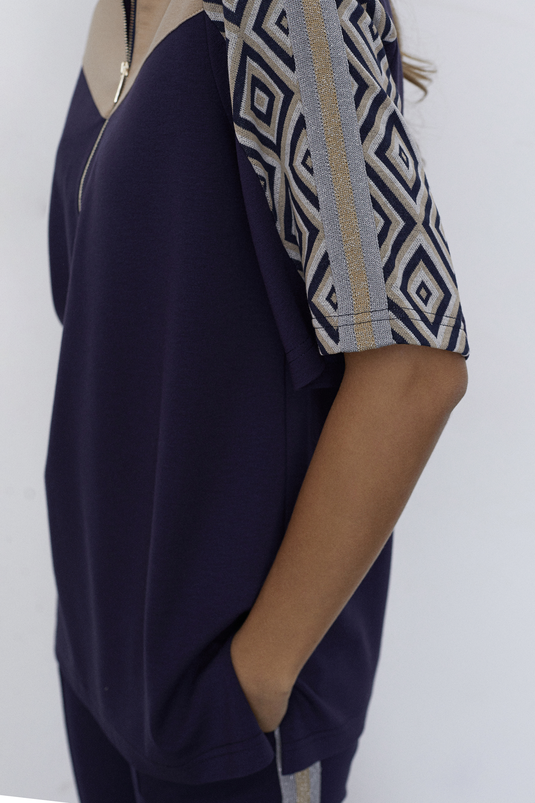 - Состав: вискоза 85%, полиэстер 15%; вставка жаккард -вискоза 70%, полиэстер 28%, спандекс 2%